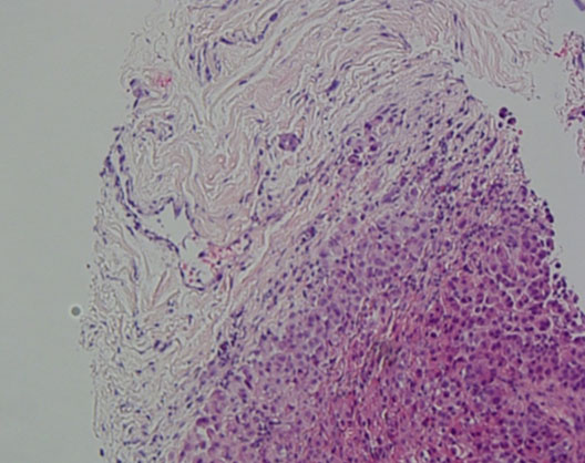 While our patient had no risk factors for mesothelioma such as exposure to heavy metals and minerals, his presentation with ascites without a clear etiology despite extensive workup is important to note. Biopsy results from his omental tissue showed evidence of chronic inflammatory cells with plasma cells which could indicate that he had an underlying connective tissue disease or autoimmune process prior to the differentiation of benign neoplastic mesothelial proliferation to malignancy. In the literature there have been similar cases such as that described by Brown et al. (1968) of a patient who developed malignant mesothelioma of the peritoneum after 12 years of repeated induction of pneumoperitoneum for abdominal tuberculosis and Riddel et al. (1981) who described recurrent peritonitis due to diverticulitis leading to peritoneal irritation and subsequent development of mesothelioma [5],[8]. In our patient while the exact relationship between his chronic recurrent ascites and mesothelioma is unclear, in view of the time period and his young age of 22 with no prior risk factors, it is difficult to conclude that there is no relationship between the two diseases. For ten years the patient had ascites and such chronic irritation may have played a part in the pathogenesis of his final disease.